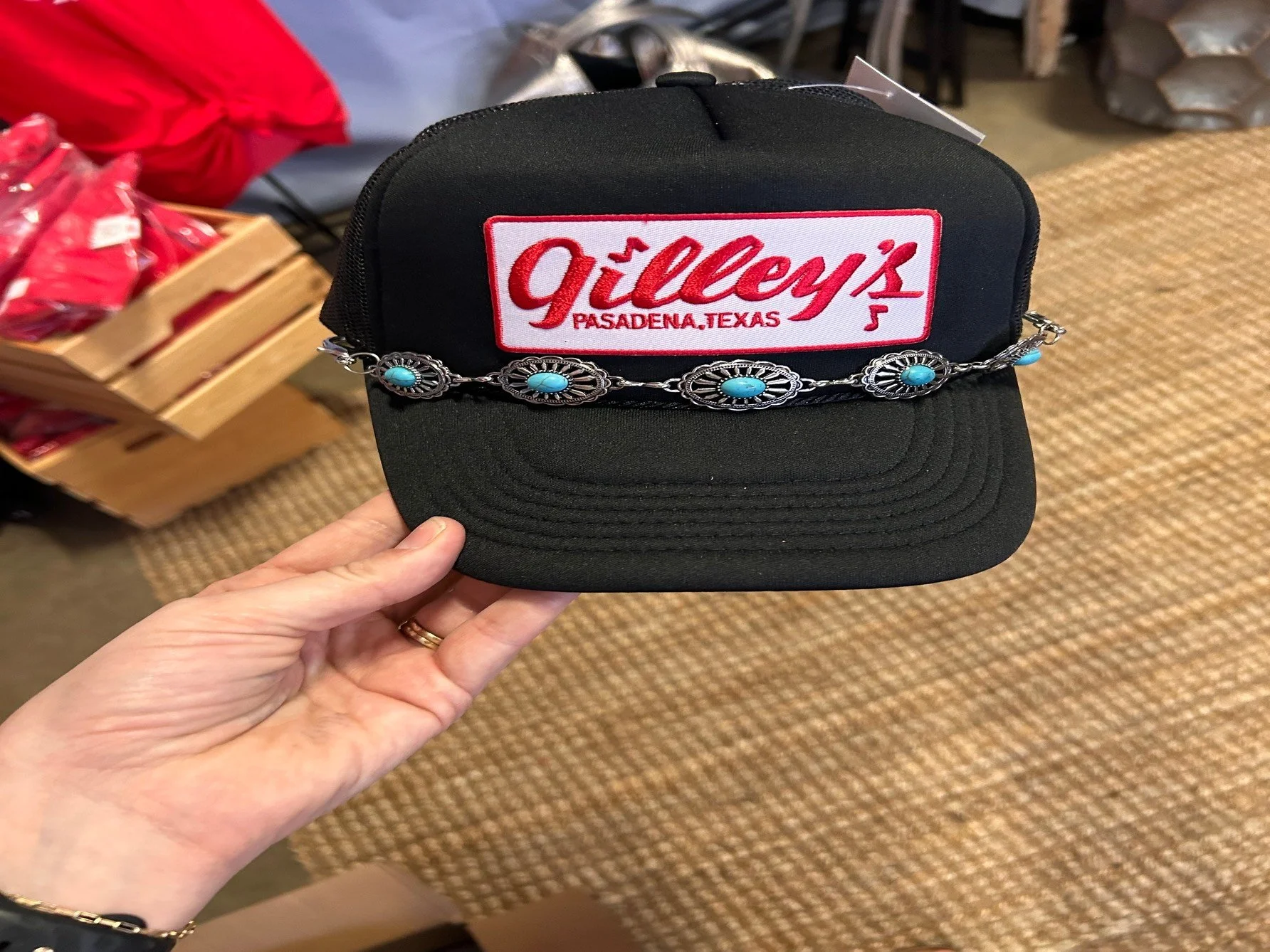 Shop Categories: All BRIM TRUCKER EMBELLISHMENTS HAT CHAINS All | BRIM | TRUCKER | EMBELLISHMENTS | HAT CHAINS | Yellow Studded Ribbon Add-On $15.00 Purchase Added! Silk Ribbon $15.00 Black Burgundy Metallic Silver Champagne Metallic Silver Purchase Added! Velvet Ribbon $15.00 Navy Sage Blue Purple Green Baby Pink Light Blue White Grey Purchase Added! Guinea Wing Plumage Feather Add-On $7.00 Purchase Added! Ringneck Pheasant Plumage Feather Add-On $7.00 Purchase Added! Ostrich Feather Add-On $3.00 Purchase Added! Turkey Pheasant Feather Add-On $3.00 Purchase Added! Male Pheasant Feather Add-On $7.00 Purchase Added! Peacock Feather Add-On $7.00 Purchase Added! Beaded Faux Pearl Trim, Applique Lace Ribbon, Rhinestone Wrap $15.00 Purchase Added! Mandala Crafts 6mm Braided Leather Cord $5.00 Purchase Added! Mandala Crafts Large Hole Beads $15.00 Purchase Added! Gold Metal Hamsa Hand Evil Eye Charm $10.00 Purchase Added! Bridal Sash Belt with Crystal Rhinestone Satin Ribbon $15.00 Black Pink Purchase Added! 5mm Studded Faux Suede Cord Rope $5.00 Gold Silver Aqua Beige Cream Turquoise Burgundy Lavender Blue Purchase Added! Premium Turquoise Cross Trucker Hat Chain $15.00 Purchase Added! Premium Small Turquoise & Silver Oval Trucker Chain $15.00 Purchase Added! Seashell & Pearl Trucker Hat Chain $10.00 Purchase Added! Hot Love Charmed Trucker Hat Chain $10.00 Purchase Added! Trucker Hat $35.00 Black White Beige Navy Grey Blue Green Forest Green Light Pink Pink Orange Light Blue camouflage Purchase Added! Premium Cowboy Hat Australian Wool with Leather Belt $150.00 Black Brown Camel Dark Green Ivory Magenta Mauve Olive Taupe Purchase Added! 100% Wool Western Cowboy Structured Hat, 57cm $150.00 Purchase Added! Lace Banded 100% Wool Felt Rancher Hat, Sage $200.00 Purchase Added! Banded 100% Wool Felt Pencil Brim Rancher Hat, Beige $150.00 Purchase Added! Banded 100% Wool Felt Pencil Brim Rancher Hat, Pecan $150.00 Purchase Added! Banded 100% Wool Felt Pencil Brim Rancher Hat, Teal $150.00 Purchase Added! Banded 100% Wool Felt Rancher, Satin Lined, Unisex, Wisteria $200.00 Purchase Added! Banded 100% Wool Felt Structed Rancher, Satin Lined, Dahlia $200.00 Purchase Added!